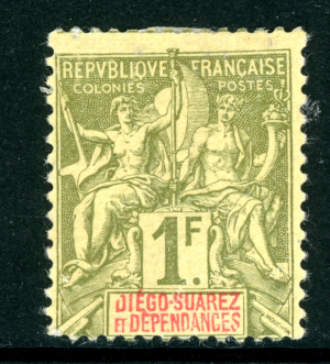 France Colonies 1892 Diego Suarez 1 Franc Bronze Green Scott #37 Mint G14
