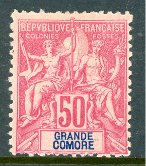 France Colonies 1897 Grande Comore 50¢ Carmine Scott #16 Mint O495
