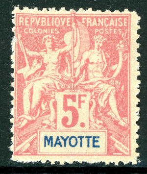 France Colonies 1899 Mayotte 5 Franc Red Lilac Fournier Copy Scott #20 Mint N959