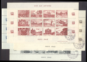 Scott # N/L : 1942 Artist Aid Sheets Centering & Condition: Mint. Fresh. Very Fine set of (4) Artist Aid sheets in Reverse (Gum Side): Original gum. Never Hinged. Faults / Imperfections: None The item pictured is the actual item you are purchasing, unless otherwise noted. I also offer an interest-free layaway plan. Ask me about it!" All items will be mailed a day or two after payment is received. --------------------------------------------------------------------------------