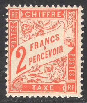 France Scott J43. Unused. Very very trivial thin. Corner crease. 1