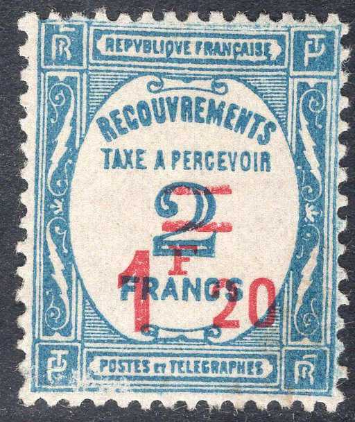 France Scott J66. Mint. Never hinged. Very very trivial thin. 1