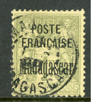 French Colonies 1895 Madagascar 1 Franc Bronze Green Scott #21 VFU I241