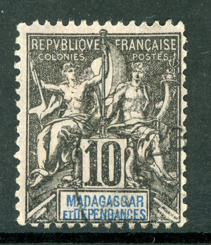 French Colonies 1896 Madagascar 10¢ Black Scott #43VFU I55