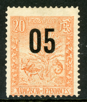 French Colonies 1912 Madagascar 5¢/20¢ Orange Scott 120 Mint I319