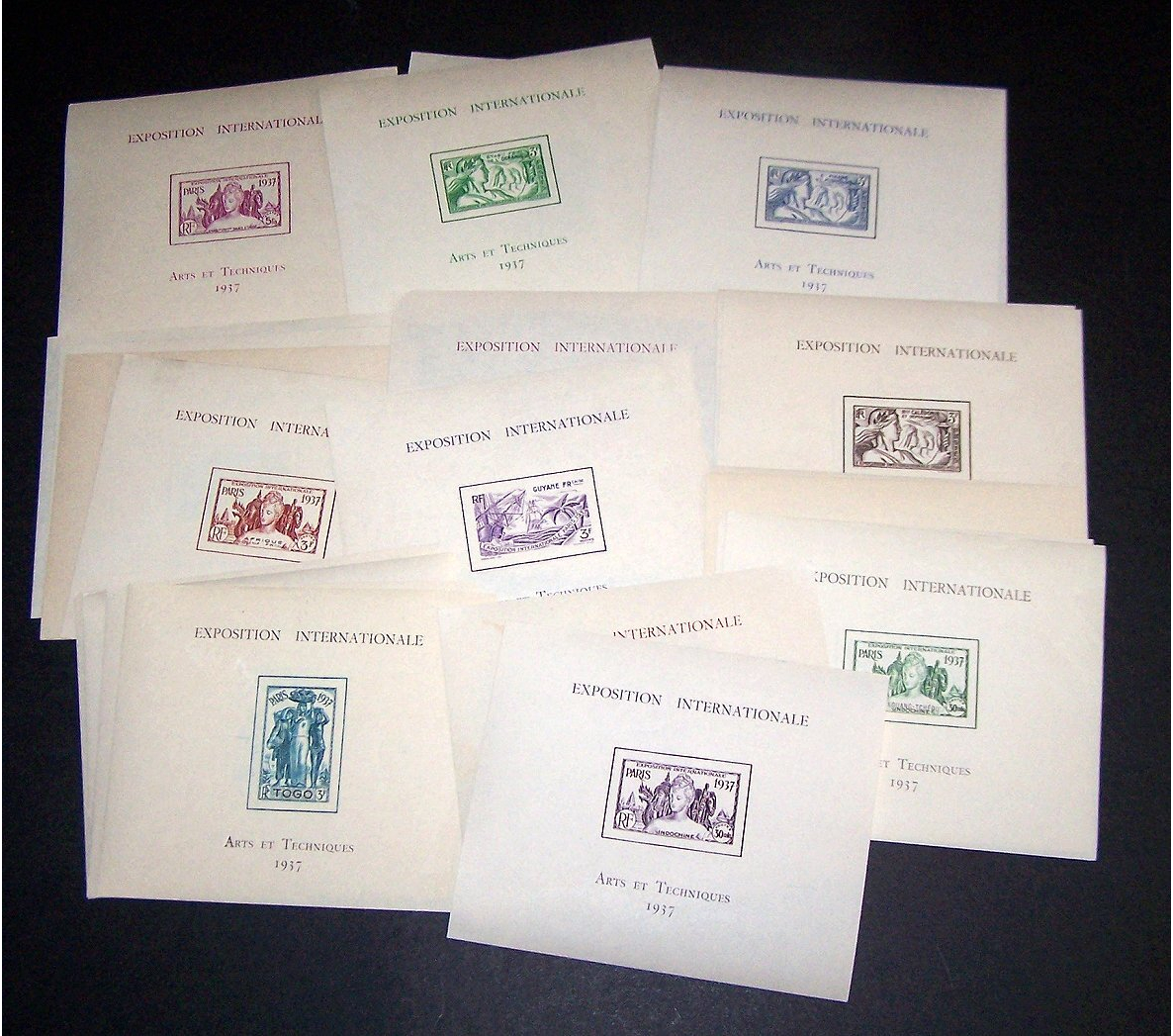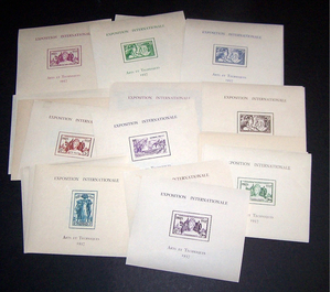 Scott # - 1937 Arts Expo Sheets Centering & Condition: Mint. Fresh. Almost Complete set (missing Cameroun) set of sheets Reverse (Gum Side): Original gum. Most Lightly Hinged. Faults / Imperfections: None The item pictured is the actual item you are purchasing, unless otherwise noted. I also offer an interest-free layaway plan. Ask me about it!" All items will be mailed a day or two after payment is received. --------------------------------------------------------------------------------