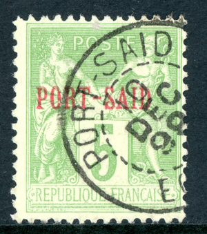 French Colonies in Egypt 1899 Port Said 5¢ Yellow Green Type 2 Sc #5a VFU L944