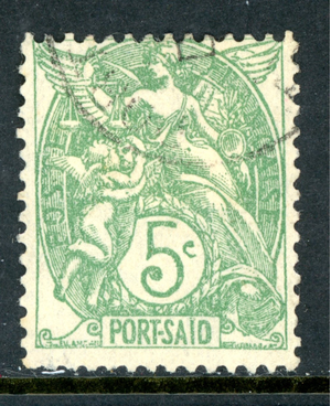 French Colonies in Egypt 1903 Port Said 5¢ Blue Green Sc #22a VFU M29