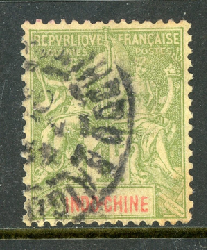 French Colony 1892 Indochina 1 Franc Bronze Green Scott #20 VFU Q867 ⭐⭐⭐⭐