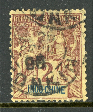 French Colony 1892 Indochina 2¢ Brown Scott #4 VFU Q840 ⭐⭐⭐⭐