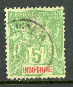 French Colony 1892 Indochina 5¢ Green Scott #7 VFU Q871 ⭐⭐⭐⭐