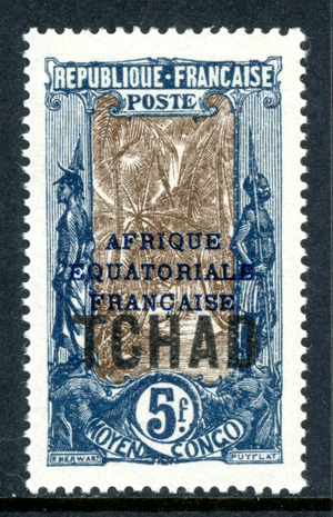 French Colony 1924 Chad AEF 5 Franc Indigo & Brown Scott #50 Mint H846
