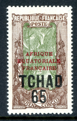 French Colony 1924 Chad AEF 65¢/1F Violet & Green Scott #52 Mint H848