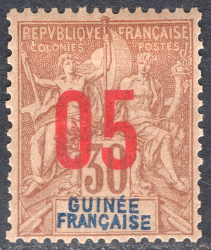 French Guinea Scott 52. Unused. Very very trivial thin.