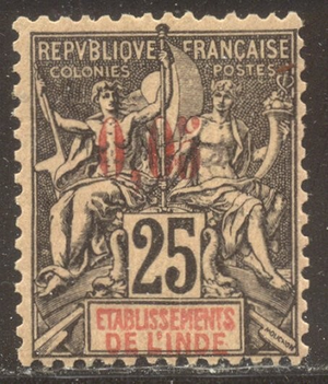 Scott #20: 1903 5c on 25c Black on Rose Centering & Condition: Mint. Fine and SCARCE. Reverse (Gum Side): Original gum. Lightly Hinged. Faults / Imperfections: None The item pictured is the actual item you are purchasing, unless otherwise noted. I also offer an interest-free layaway plan. Ask me about it!" All items purchased will be mailed a day or two after payment is received. --------------------------------------------------------------------------------
