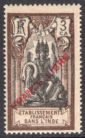 French India Scott 118. Unused. Very very trivial thin. 3