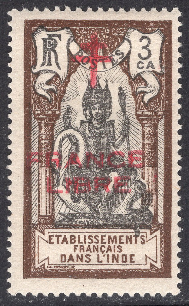 French India Scott 158. Unused. Thin. 7