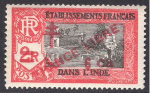 French India Scott 201. Unused. Number on back. Very very trivial thin. 5