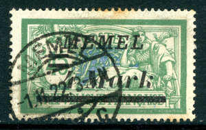 French Occ of Lithuania/Germany 1922 Memel 4m Green & Blue Scott #77 VFU O970