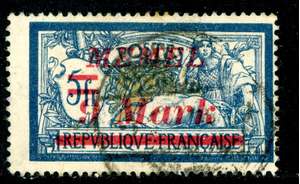 French Occ of Lithuania/Germany 1922 Memel 9 Mk Blue & Buff Scott #82 VFU O968