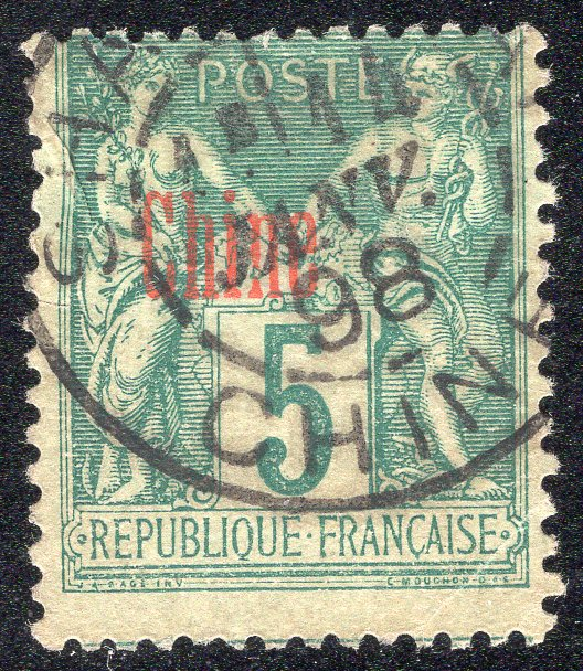 French Offices Abroad-Offices in China Scott 1. Used. Crease.