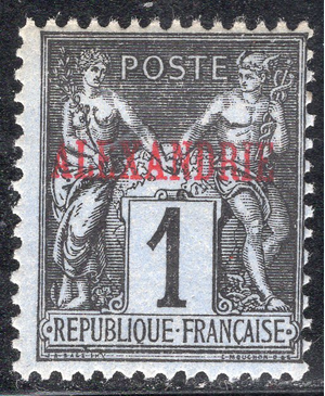 French Offices Abroad-Offices in Egypt-Alexandria Scott 1. Unused. 1