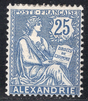 French Offices Abroad-Offices in Egypt-Alexandria Scott 24. Unused. Thin. 2
