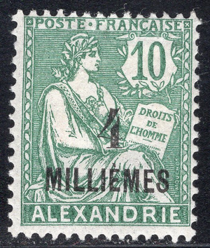 French Offices Abroad-Offices in Egypt-Alexandria Scott 50. Unused. 2