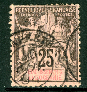 French Polynesia 1892 Tahiti 25¢ Scott #11 VFU G325