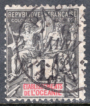 French Polynesia Scott 1. Used. Perforated 14x13.5. 1