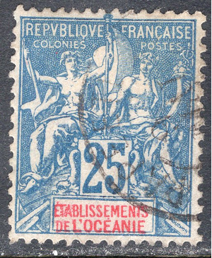 French Polynesia Scott 12. Used. Perforated 14x13.5. 1