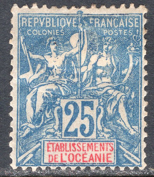 French Polynesia Scott 12. Unused. Perforated 14x13.5. 3