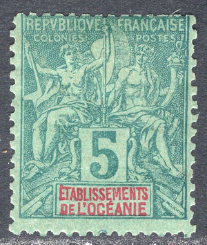 French Polynesia Scott 4. Unused. Perforated 14x13.5. Trivial thin. 1