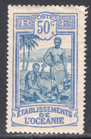 French Polynesia Scott 43. Unused. Very trivial thin. Number on back. 1