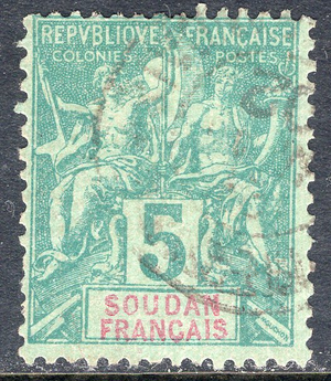 French Sudan Scott 6. Used. Very very trivial thin. Perforated 14x13.5. 2
