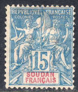 French Sudan Scott 9. Unused. No gum. Perforated 14x13.5. 1