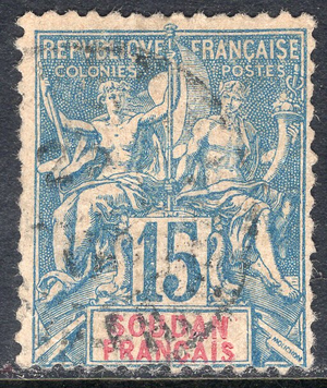French Sudan Scott 9. Used. Trivial thins. Perforated 14x13.5. 2