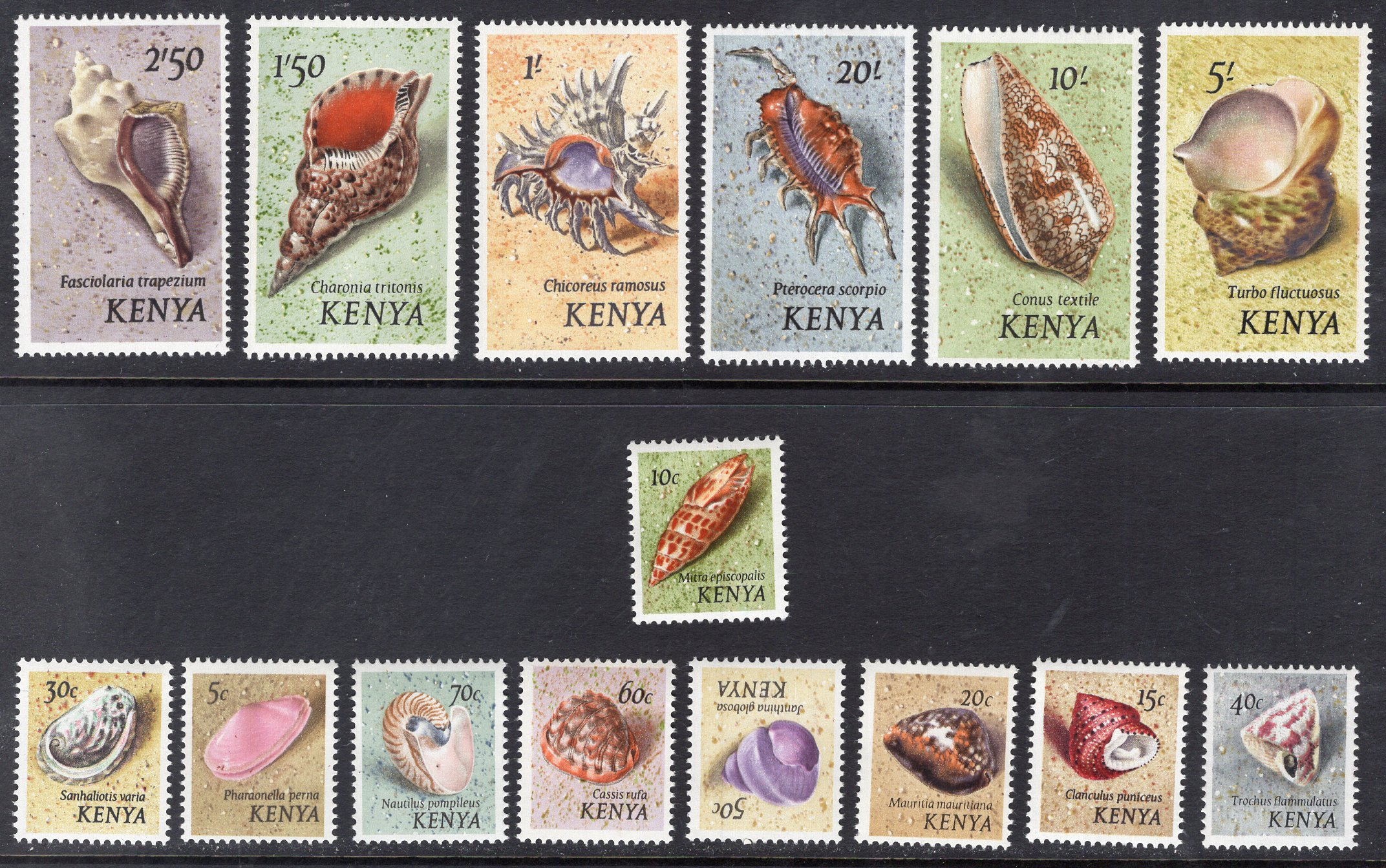 Kenya Scott 36-50. Complete set. Mint. Never hinged.