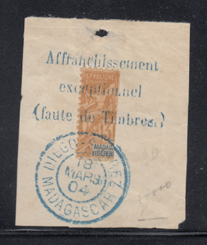 Malagasy Republic, Maury 86, bisect used on piece with Diego-Suarez postmark
