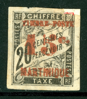 Martinique 1891 French Colony 15¢/20¢ Black Sc #28 VFU H858