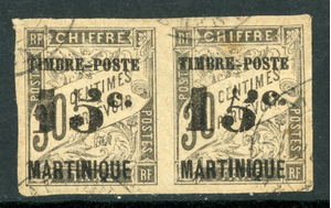 Martinique 1891 French Colony 15¢/30¢ Black Sc #25/25a "Slanting Five" VFU E100