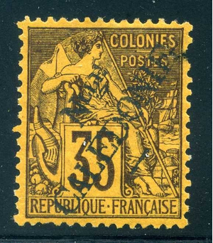 New Caledonia 30, 35c Overprint, Mint HR, thin/pulled perf at right, Scott $240