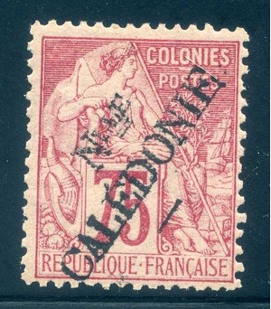 New Caledonia 32, 75c Overprint, Mint LH, Scott $225