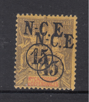 New Caledonia 62c, double surcharge, Mint Hinged, Scott $140