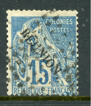 Reunion 1891 French Colonial Overprint 15¢ Blue VFU T471