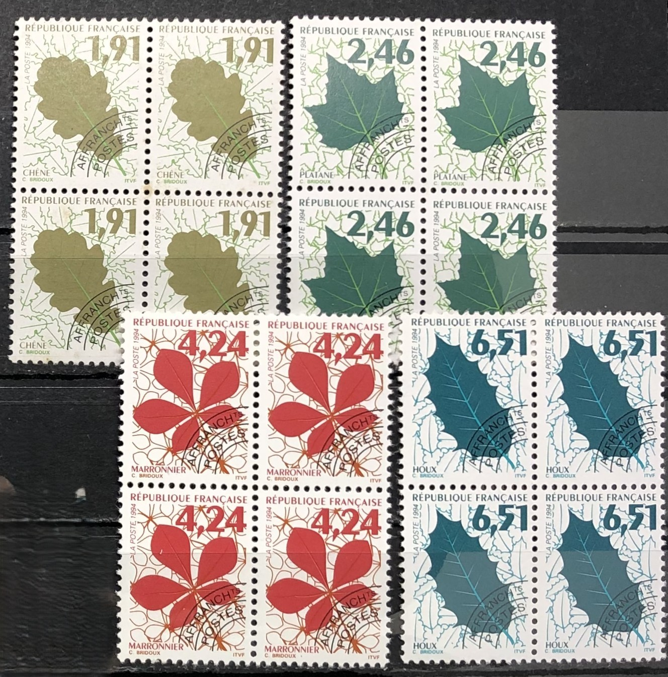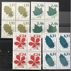 Leaves, 1994. Complete set of 4 blocks of 4.