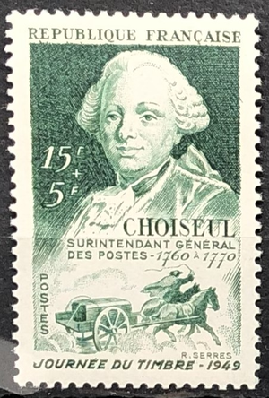Etienne Francois de Choiseul and Post Cart, Stamp Day, 1949. Single.