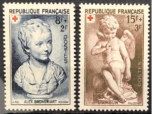 Sculptures by Houdon and Falconet with surtax for the Red Cross, 1950. Complete set of 2.