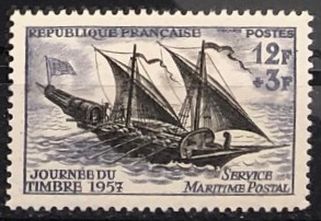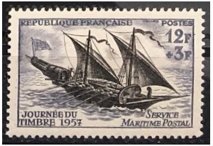 Stamp Day and honoring the Maritime Postal Service, 1957. Single.