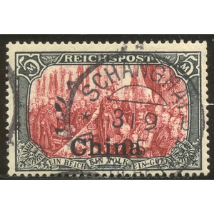 GERMANY Offices in CHINA #36 RARE Used - 1901 5m Slate Carmine, Type I